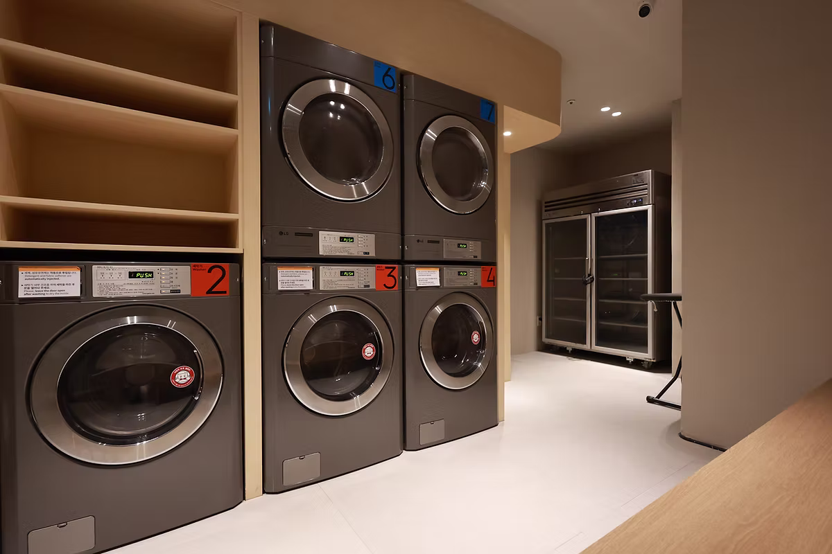 라인형 집+화살표+텍스트 네비 부대시설 freelaundry 'Refresh Your Stay, Hassle-Free.' 뉴블랑 무료 세탁 공간에서는 투숙객이 간편하게 옷을 세탁하고, 여행 중에도 깔끔함을 유지할 수 있습니다.세탁기와 건조기가 완비되어 있어 언제든 자유롭게 이용 가능하며, 사용법도 간단해 혼자서도 손쉽게 관리할 수 있습니다. 바쁜 여행 중에도 여유롭게 머무르며, 깔끔하게 준비된 옷으로 하루를 시작하세요. 고객 전용 무료 세탁 공간 | 19F | 운영시간 | 6am To 10pm* 자세한 내용이나 문의는 프론트 데스크로 문의해 주시기 바랍니다.* 이용 시간 및 공간은 호텔 사정에 따라 변경 혹은 제한될 수 있습니다.* 본 세탁공간은 투숙객 전용 공간으로, 외부 고객의 이용이 제한될 수 있습니다. 또한 행사 또는 시설 점검 등의 사유로 일시적으로 이용이 제한될 수 있으니 너른 양해 부탁드립니다. 행사 | 기타 대여 contact | 호텔 프론트 mail : newblancetralmyeongdong@stayneo.com tel : 02-1533-7220